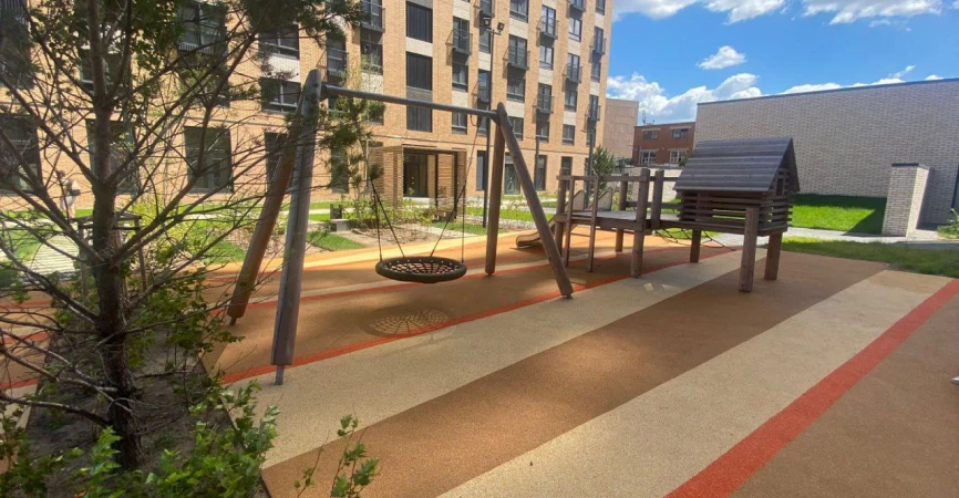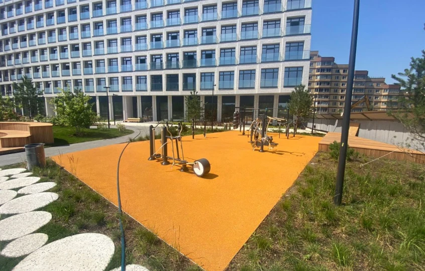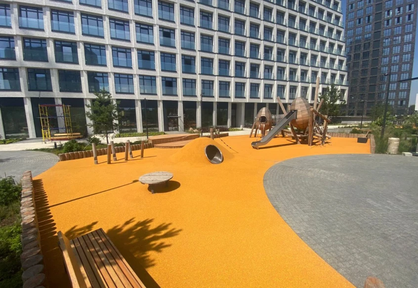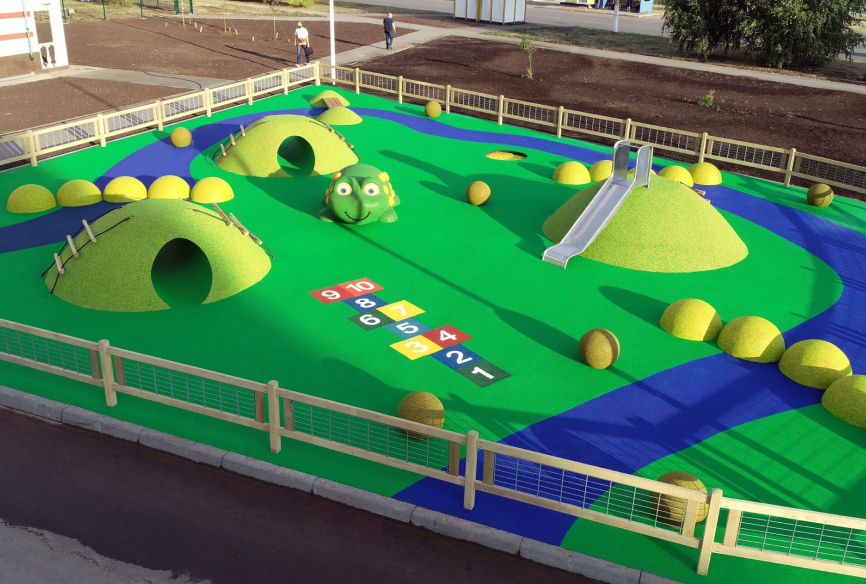 Ещё один яркий проект реализован при участии нашего надёжного партнёра в Казахстане — установлена новая детская площадка с современным покрытием,
